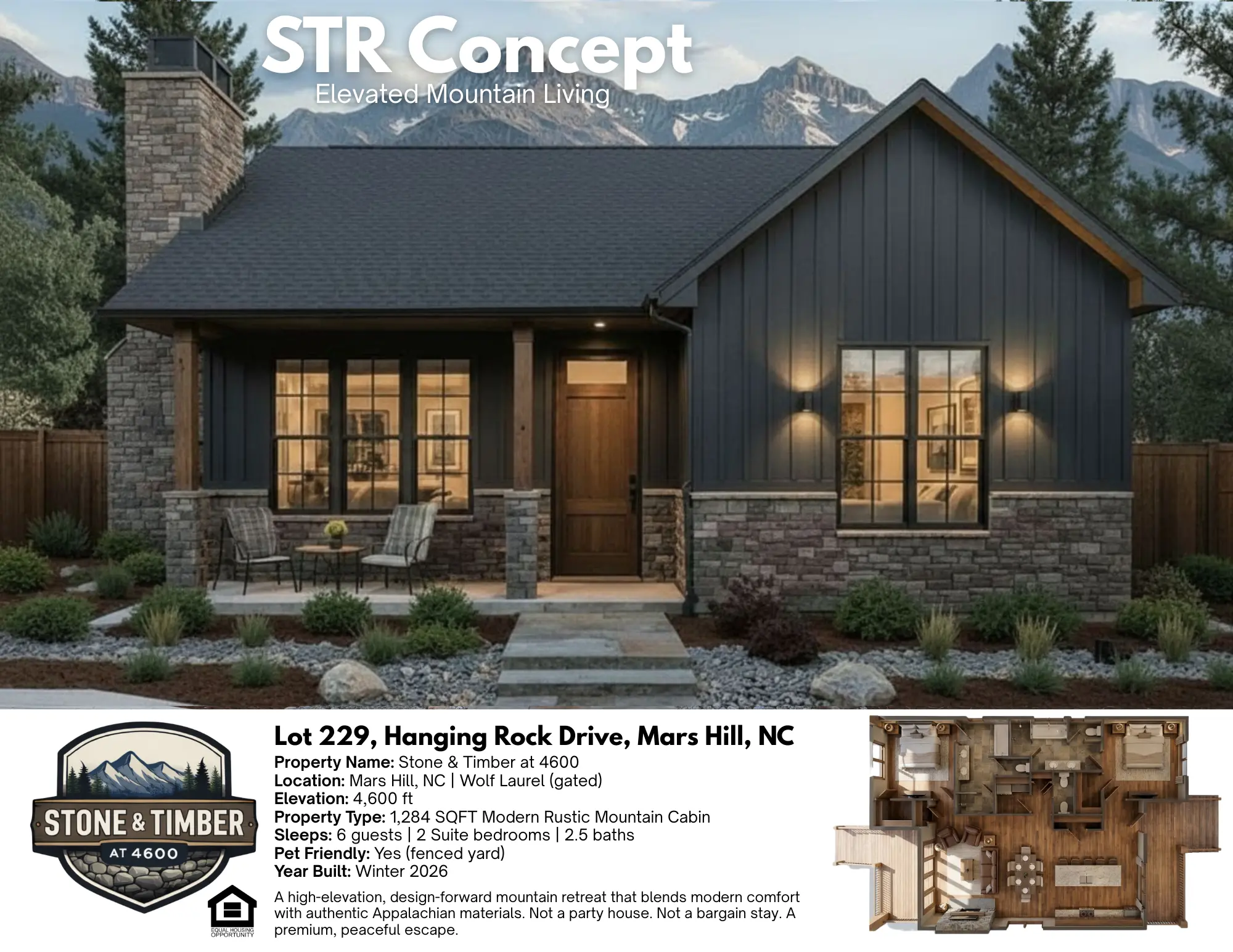 Wolf Laurel · Mars Hill, NC · 4,600 ft · 1,284 SQFT · Winter 2026